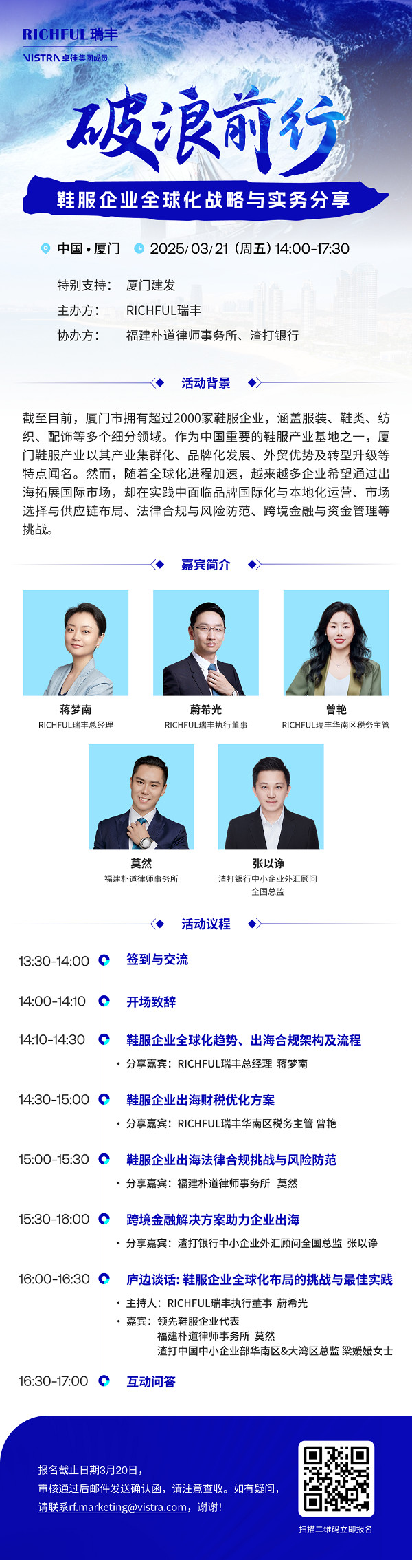 邀請函 | 3月21日 廈門 | 破浪前行——鞋服企業(yè)全球化戰(zhàn)略與實務(wù)分享