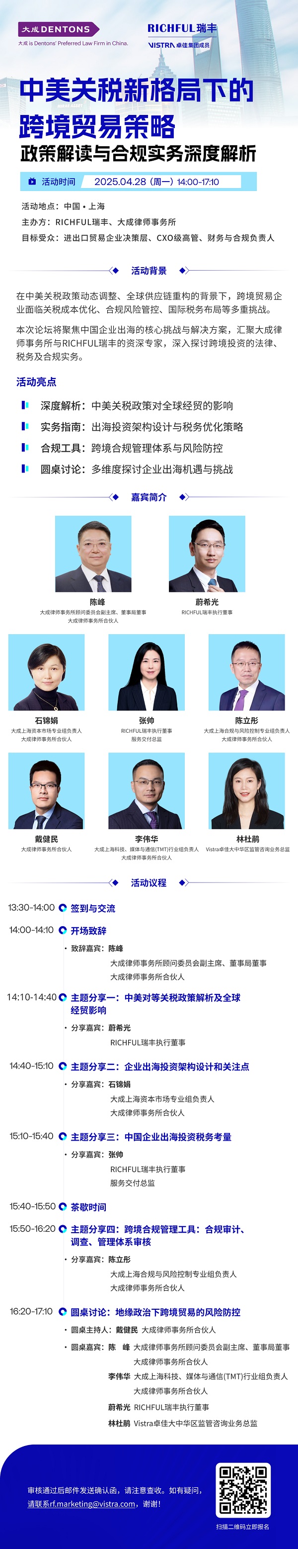 邀請(qǐng)函|4月28日 上海|RICHFUL瑞豐 x 大成律所:中美關(guān)稅新格局下的跨境貿(mào)易策略研討會(huì)