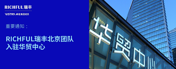 自2025年5月1日起,RICHFUL瑞豐北京團(tuán)隊入駐朝陽核心商務(wù)區(qū)華貿(mào)中心,以升級的辦公環(huán)境和資源整合,開啟專業(yè)服務(wù)新里程!
