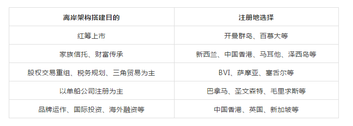 不同企業(yè)、不同需求,離岸架構(gòu)的搭建方式、注冊(cè)地選擇不同。