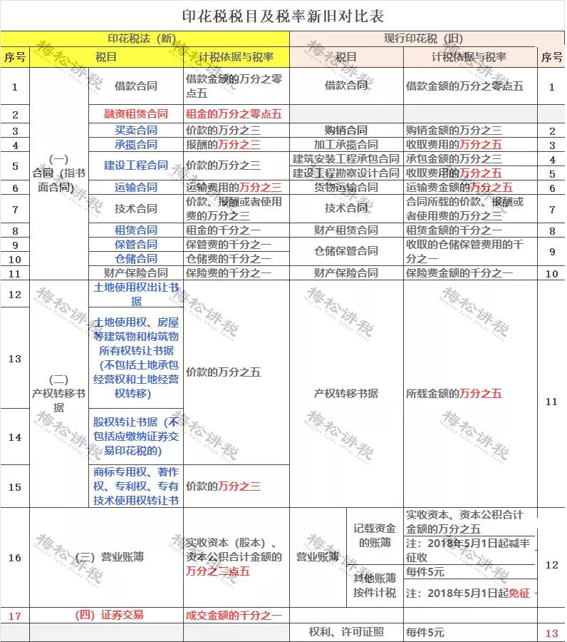 印花稅降低了稅率,比如商標(biāo)權(quán)、著作權(quán)等就從萬(wàn)分之五降低到萬(wàn)分之三;