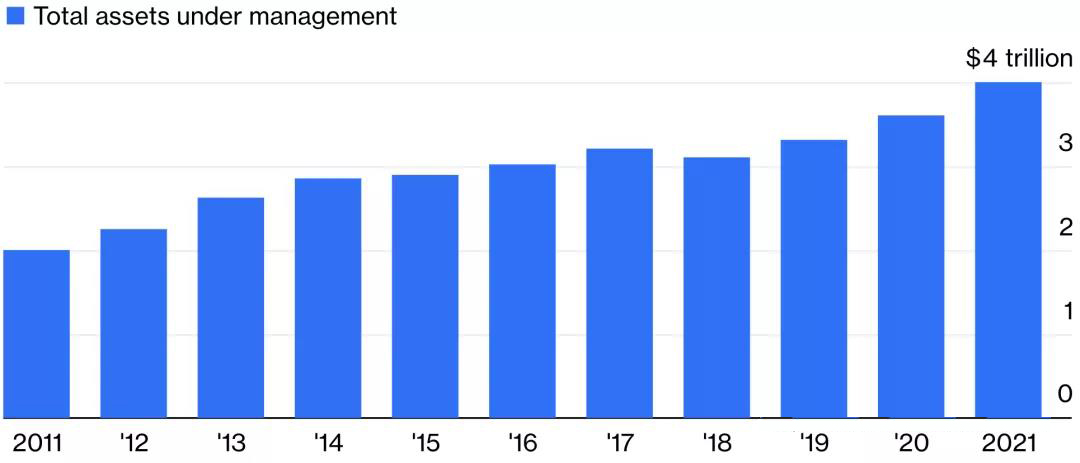 根據(jù)HRF的統(tǒng)計(jì),對(duì)沖基金的資產(chǎn)規(guī)模在2018年出現(xiàn)下滑后,到去年12月底攀升至創(chuàng)紀(jì)錄的4萬(wàn)億美元規(guī)模。2021年增加了4000億美元,是十年前的兩倍。
