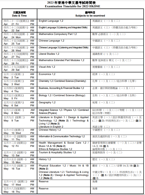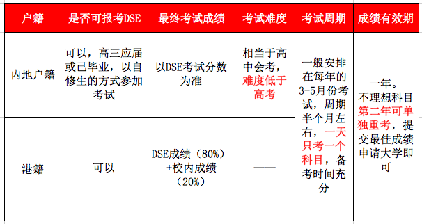 (1)DSE考試科目由4個核心科目加2-3個選修科目組成,大學錄取以最佳5門或最佳6門計算成績。