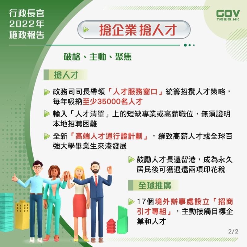 科技人才入境計劃下雇主須同時增聘本地雇員的規(guī)定也會撤銷,以加快輸入人才步伐。