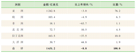 2. 超七成投資流向亞洲地區(qū),對北美洲、大洋洲投資快速增長