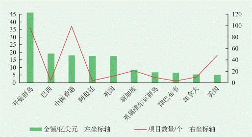 圖表5. 2022年中國企業(yè)對外投資并購十大目的地(按并購金額)