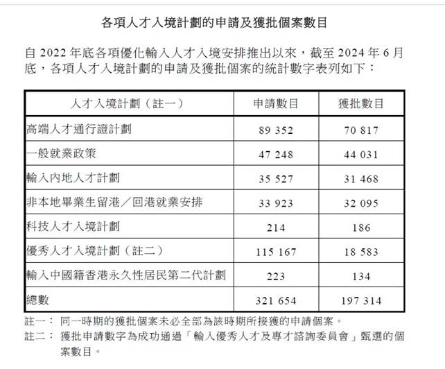 從目前數(shù)據(jù)來(lái)看,港府已經(jīng)超額完成吸引人才“指標(biāo)”。據(jù)立法會(huì)披露的文件,截至2024年6月底,經(jīng)過(guò)各項(xiàng)人才入境計(jì)劃共接收了超過(guò)32萬(wàn)份申請(qǐng),其中近20萬(wàn)宗申請(qǐng)已獲批準(zhǔn),超過(guò)13萬(wàn)名人才已經(jīng)抵達(dá)香港。根據(jù)香港入境事務(wù)處最新公布的統(tǒng)計(jì)數(shù)據(jù),2024年第一季度,成功獲批的申請(qǐng)案例數(shù)量上升至2,735宗,較去年同期增加了662宗,實(shí)現(xiàn)了約32%的顯著增長(zhǎng)。