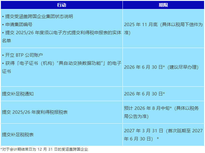 以下內(nèi)容概述受蓋跨國企業(yè)集團(tuán)在新制度下的相關(guān)義務(wù)以及規(guī)定期限。