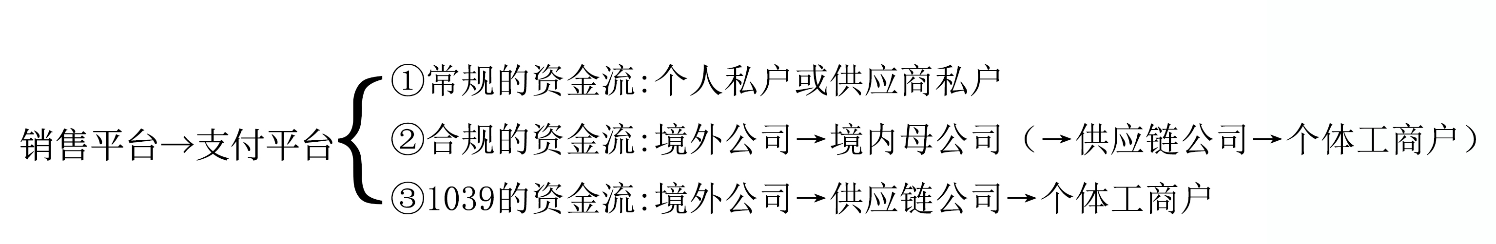 1039的資金流:銷售平臺(tái)→支付平臺(tái)→境外公司→供應(yīng)鏈公司→個(gè)體工商戶;