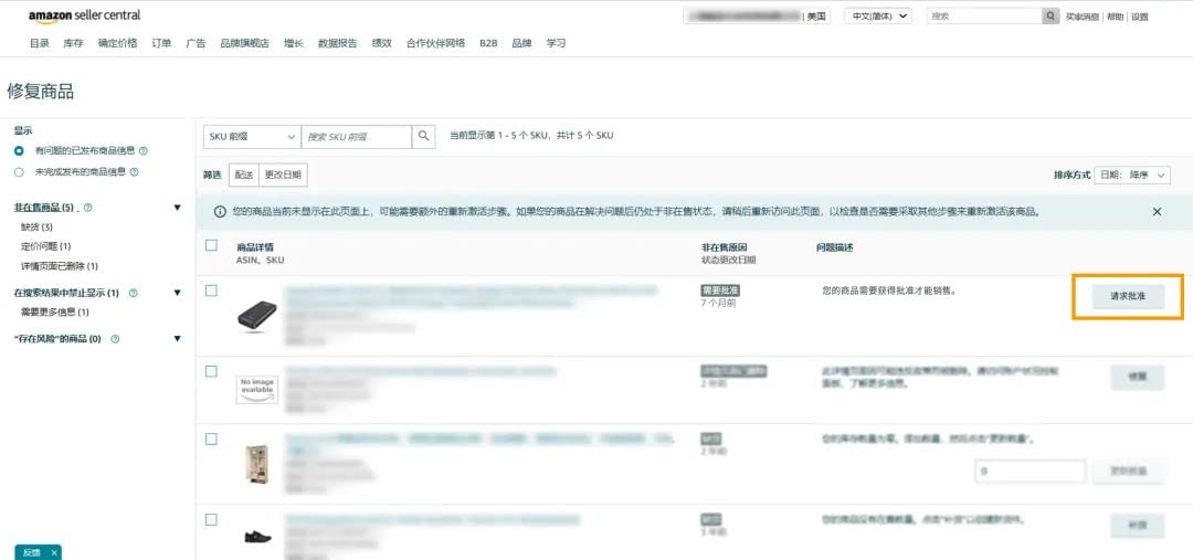 ③ 這會將您引導至郵件通知中提供的修復商品頁面,您可以點擊對應商品的“請求批準”按鈕;