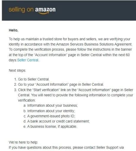 1、首先,賣家將會收到一封郵件,通知您開始驗證納稅人身份。