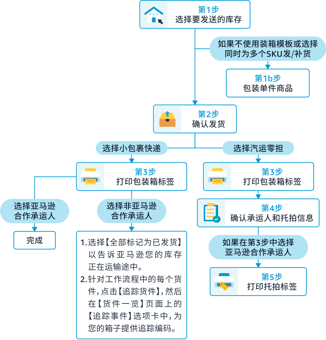 根據(jù)所在的站點(diǎn)及創(chuàng)建貨件時(shí)所做的選擇,賣(mài)家看到的步驟可能有所不同,大致步驟如下: