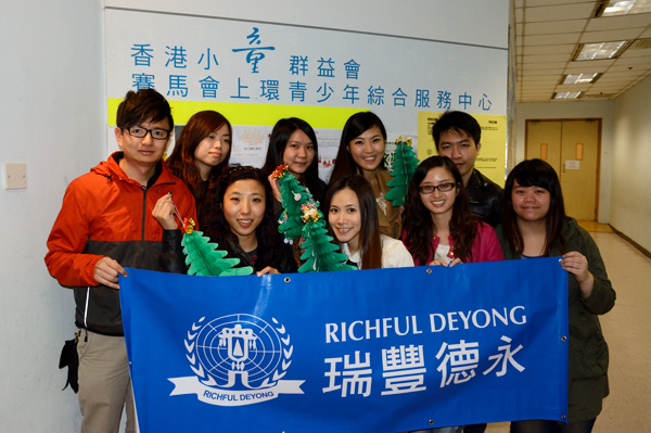 2013年,瑞豐德永集團香港總部攜手慈善機構(gòu)開展了一系列慈善活動。12月份,瑞豐德永集團香港總部的員工去看望了香港小童群益會的小朋友,為他們帶去歡笑和溫暖。