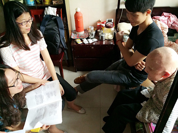 婆婆叮囑我們,年輕人要多運(yùn)動(dòng),注意休息保護(hù)好自己的眼睛。還跟我們分享年輕時(shí)候生活的艱辛,婆婆的活潑開(kāi)朗使氣氛都活躍起來(lái),她告訴我們要時(shí)刻保持樂(lè)觀(guān)愉快的心情,年紀(jì)雖然大,但是心態(tài)要年輕,還要每天堅(jiān)持讀報(bào)。