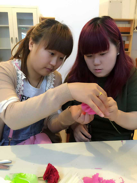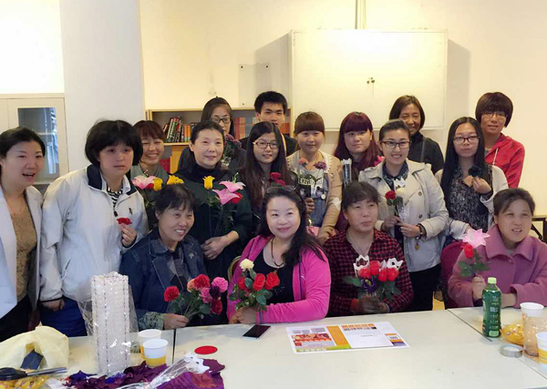 兩個(gè)小時(shí)的公益活動(dòng)很快就結(jié)束了,看著自己親手做出來的漂亮花兒大家都很開心也很滿足,同時(shí)也希望這些花兒可以給殘疾人媽媽帶去歡樂。