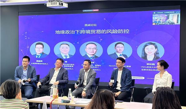在圓桌討論環(huán)節(jié),大成律師事務所合伙人戴健民擔任主持,與Vistra卓佳、大成律所多位專家就"地緣政治下跨境貿(mào)易的風險防控"展開深度對話。