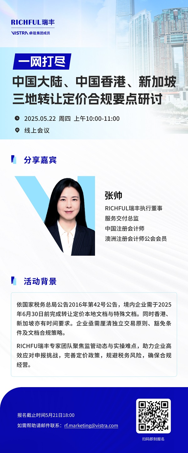 5.22直播預(yù)告 | 中國大陸、中國香港、新加坡三地轉(zhuǎn)讓定價合規(guī)要點(diǎn)研討