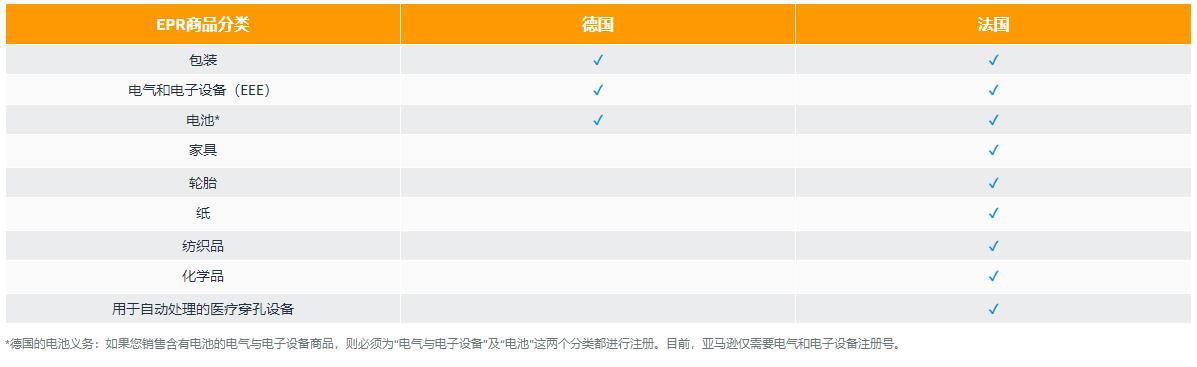 生產(chǎn)者責(zé)任延伸(EPR)是一項(xiàng)環(huán)境政策,要求生產(chǎn)者對其在市場上所推出商品的整個(gè)生命周期負(fù)責(zé),即從商品設(shè)計(jì)開始到商品生命周期結(jié)束(包括廢棄物收集和處理)。自 2022 年起,如果您要在法國/德國銷售商品,亞馬遜將有義務(wù)確認(rèn)您在銷售商品所在的國家/地區(qū)是否符合生產(chǎn)者責(zé)任延伸(EPR)的要求。因此,亞馬遜將會(huì)收集并驗(yàn)證您的 EPR 注冊號(hào)。