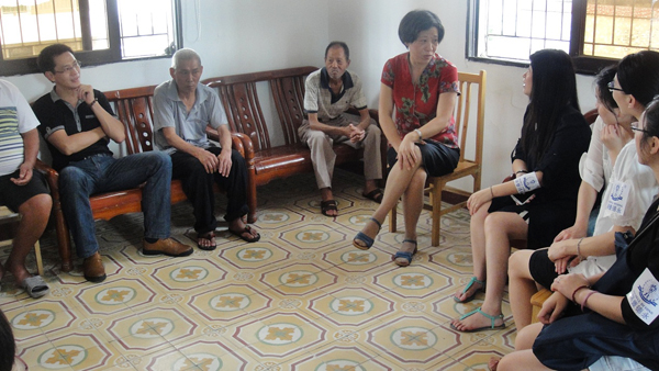 廈門公司員工正在向院長(zhǎng)了解爺爺們的日常起居情況